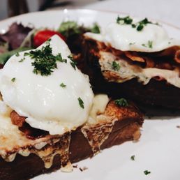 Great spot for quick, delicious brunch! There's plenty of seating with an L-shaped bar, couches, tons of tables and outdoor seating. Your walk up to order then the food is brought to the table quickly. I ordered the Croissant Breakfast Sandwich with egg. It was delicious and far more than I could possibly eat in one sitting. My fiancé ordered the Open faced Breakfast Sandwich and he loved everything, but said the bacon was especially good! It's a little pricey, but on par for the area and well worth the money!